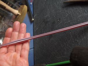 16. Mit einer dicken Klarstange wird der fette Blob gezogen....etwa 5 bis 7 mm dick. Jetzt wird es Zeit für ein Käffchen...der Zug muss etwas abkühlen, sonst kann ich ihn nicht anfassen :-)
