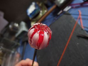10. Mit ZWEI Schichten Klarglas einhüllen damit der Murrini später schön auseinander geht. Dabei auch an der Spitze und hinten am Dorn nochmal Klar nachlegen und einschmelzen.